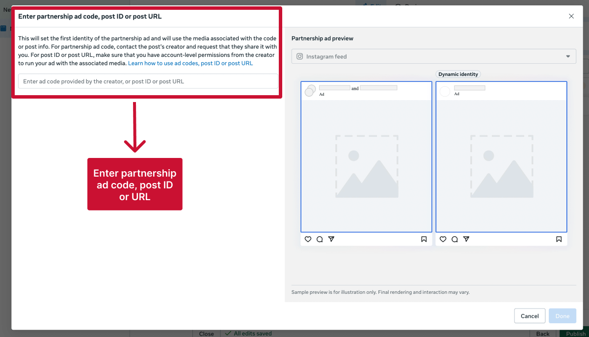 2. Paste the creatorâs ad code, post ID, or post URL.