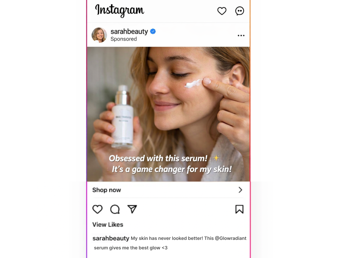 To users, the ad looks like a creator recommendation rather than a traditional brand ad, which often leads to stronger engagement and conversion rates.
