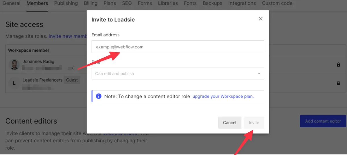 You can give Webflow Content Editor access if you have a Webflow Business, Webflow CMS, or Webflow Ecommerce website plan.Â