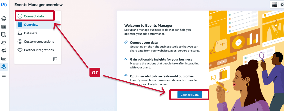 đ Keep in mind: While you donât create ads in Events Manager, the data managed here is directly synced with Meta Ads Manager. That means if Events Manager isnât set up correctly, your ad optimisation will be impacted, even if your ads themselves are well built!