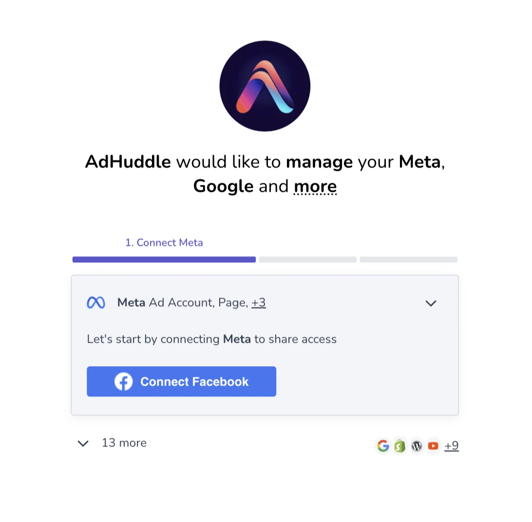 Leadsie can request manage or view only access for 31 different accounts and assets across Meta, Google and 14 more platforms including Shopify, LinkedIn, X and TikTok. You can also request influencer whitelisting access for supported Meta assets.